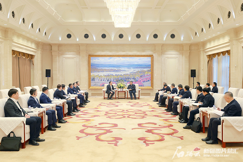 2月19日,自治区党委书记马兴瑞、自治区主席艾尔肯·吐尼亚孜在乌鲁木齐会见哈萨克斯坦国家铁路公司董事长萨乌兰巴耶夫一行。天山网-新疆日报记者 崔志坚摄