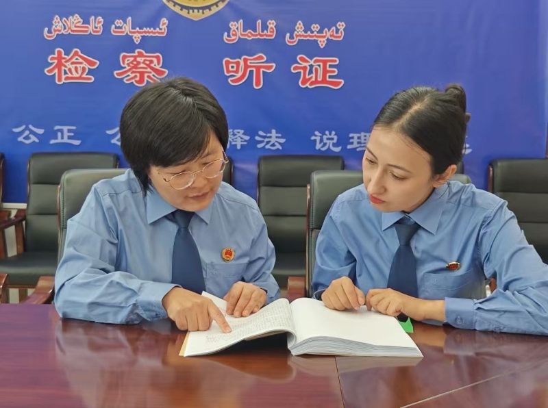 克拉玛依区资深检察官指导青年干警严把案件质量。受访单位供图