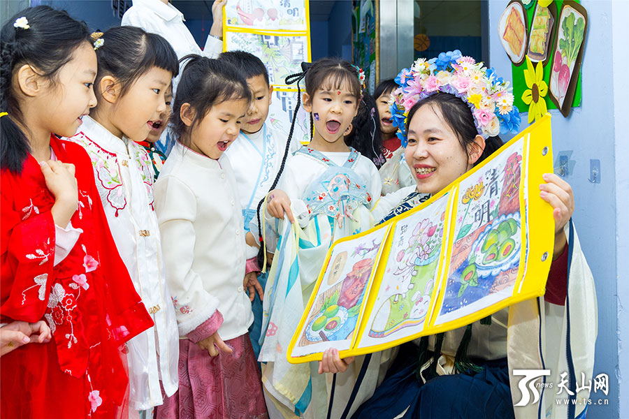 当日,乌鲁木齐市沙依巴克区环卫路街道环卫路社区干部走进红蜻蜓乐颂幼儿园,带领孩子们制作青团、放风筝,了解清明习俗,感受中华优秀传统文化的魅力。