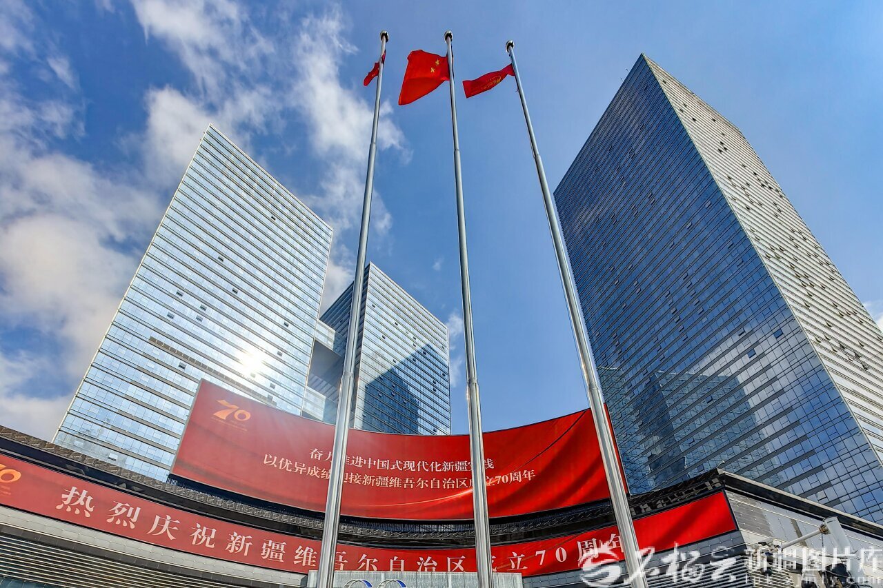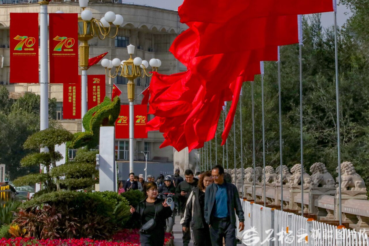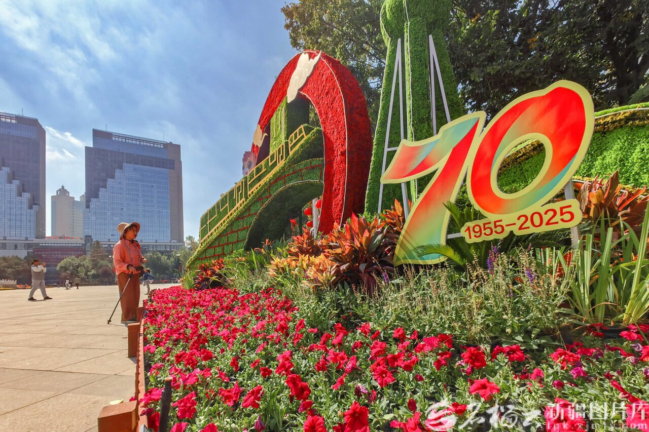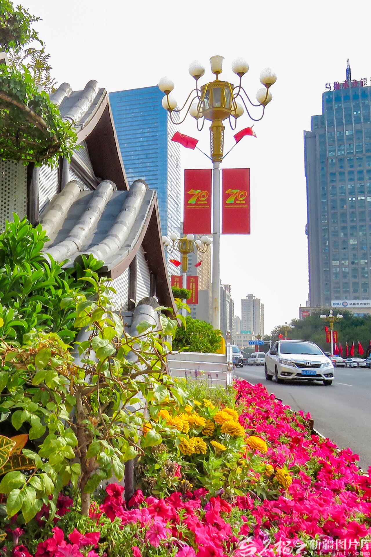天山网-新疆日报讯(记者蔡增乐摄影报道)一场秋雨过后,乌鲁木齐天高云淡,碧空如洗,整座城市沐浴在金秋的阳光中。在新疆维吾尔自治区成立70周年之际,乌鲁木齐市大街小巷花团锦簇、红旗招展,园林景观精美别致,大屏幕、宣传标识牌亮丽喜庆,处处洋溢着喜庆祥和的节日氛围。